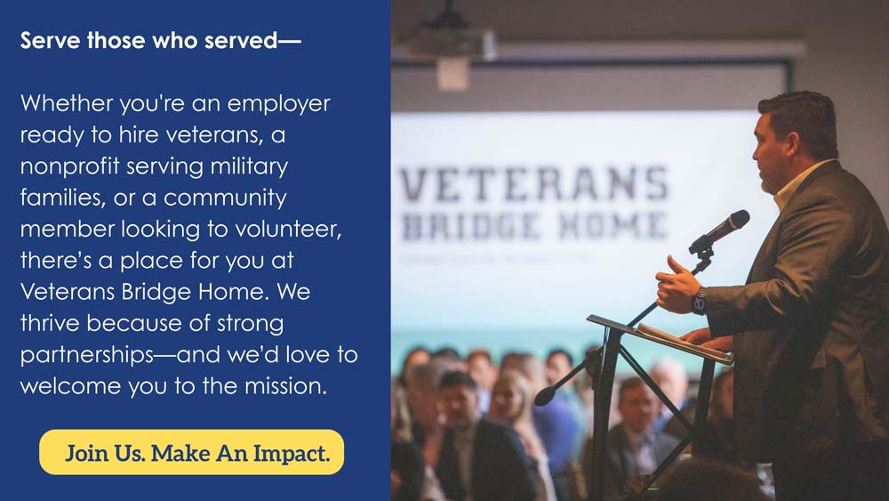STAY CONNECTED WITH VETERANS BRIDGE HOME BY SIGNING UP FOR OUR NEWSLETTERS. IT IS A GREAT WAY TO LEARN ABOUT EMPLOYMENT OPPORTUNITIES, EVENTS AND CONNECT WITH OTHER VETERANS IN NORTH AND SOUTH CAROLINA.